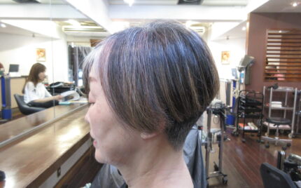 説明:カットで来店です。日本に帰国の度に来店くださいます。カットは好評の定番ショートです。再現性持続力が高く、一年来店アンク手もスタイルが持ちます。