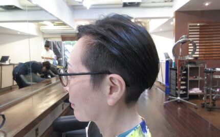 カットカラーで来店です。カットは再現性の高い定番ショートです。カラーは髪にダメージのないマニキュアです。私のお客様ず全て、最低限のダメージをここ掛けて仕事をしています。