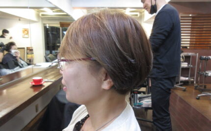 カットカラーパーマで来店です。スタイルはロングレイヤーです。トップを伸ばして柔らかいレイヤーにします。カラーは12トーンのピンク系です。パーマはしっかり大きなカールで、髪のダメージを考えて酸熱トリートメントでケアしてます。