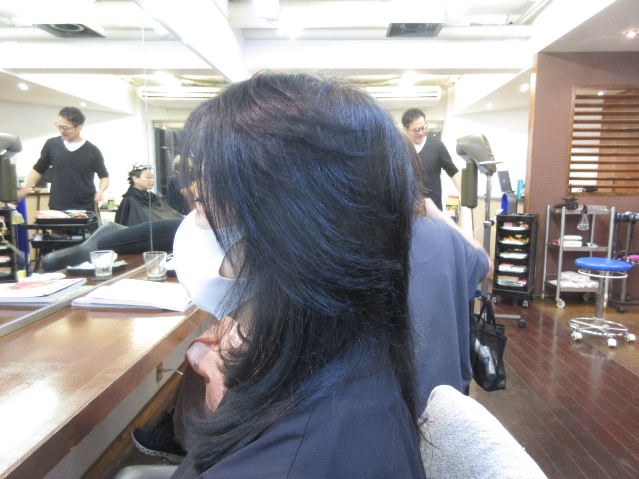 カットで来店です。スタイルは50代以降憧れのロングレイヤーです。曲がれがクラシックですが綺麗だと思います。カラーはセルフでヘアマニキュアをしています。